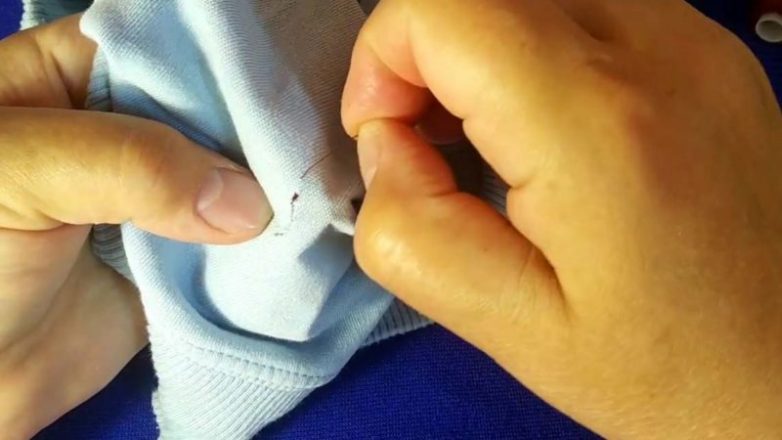 На любимой вещи появилась дырка — но не выбрасывать же её из-за этой мелочи? Если вещь действительно дорога, постараемся её реанимировать простейшим способом — с помощью скотча и простого потайного шва.