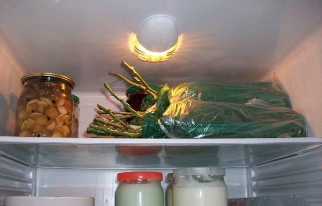 В холодильнике. Заверните саженцы винограда во влажную чистую ткань и положите в пакет с перфорацией. Поскольку в холодильнике быстро испаряется влага, регулярно увлажняйте растения. Оптимальная температура для хранения – 0-4°C. В зависимости от этого выберите подходящую полку (обычно используют нижнюю или среднюю).