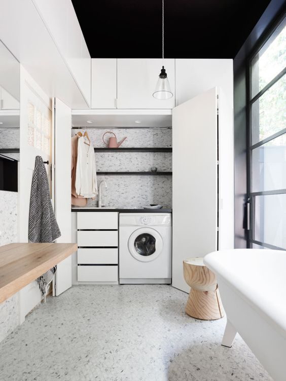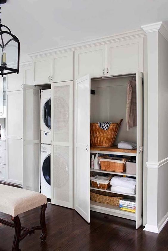 А почему бы просто не спрятать бытовую технику так, что гости даже не догадаются о ее существовании? Среди этих креативных идей по размещению стиральных и сушильных машин в доме, вы, наверняка, найдете вариант, который идеально подойдет именно для вашего дома.