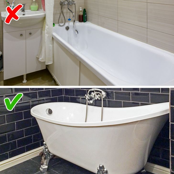 Экран под ванну выполняет несколько основных функций: скрывает канализационные трубы и позволяет хранить различные хозяйственные мелочи. Сплошной прагматизм и никакой эстетики. Сегодня дизайнеры все чаще отдают предпочтение отдельно стоящим ваннам, которые выглядят эффектно и стильно. Ради такой красоты даже бутылки с бытовой химией можно спрятать в шкаф.