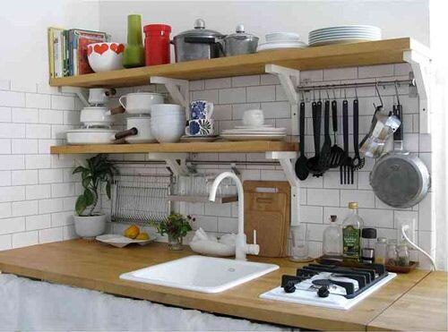 Открытые полки могут быть самого разного размера, вешать их можно на любой высоте, так что всегда есть возможность устроить маленьких уголок для хранения даже в самом маленьком закутке.