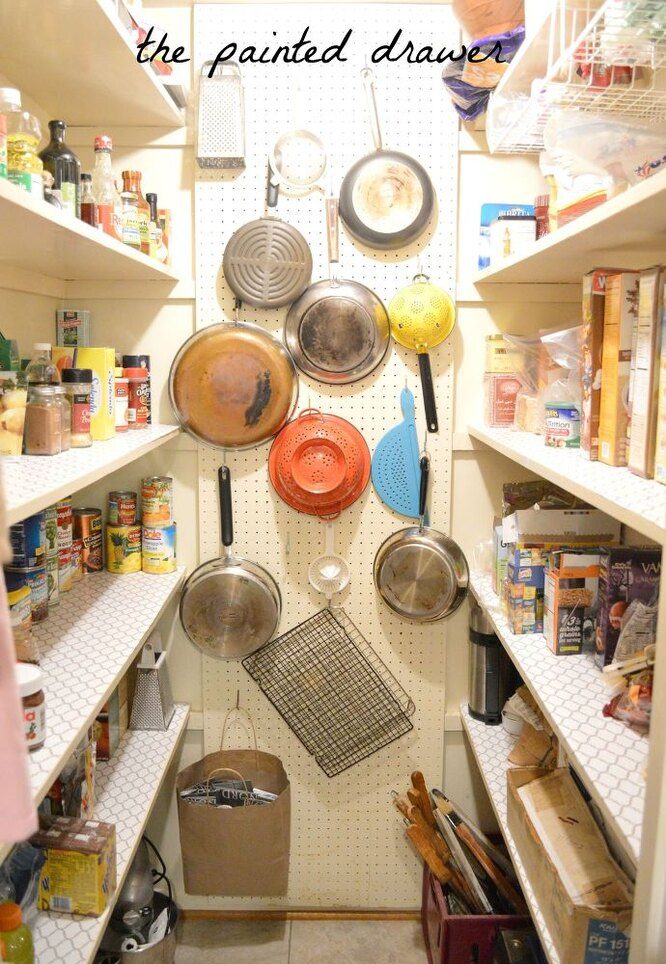 Если кухонные приспособления не умещаются в ящиках, установите на стену панель с перфорацией и оборудуйте ее S-образными крючками. Никакого беспорядка и все на виду.