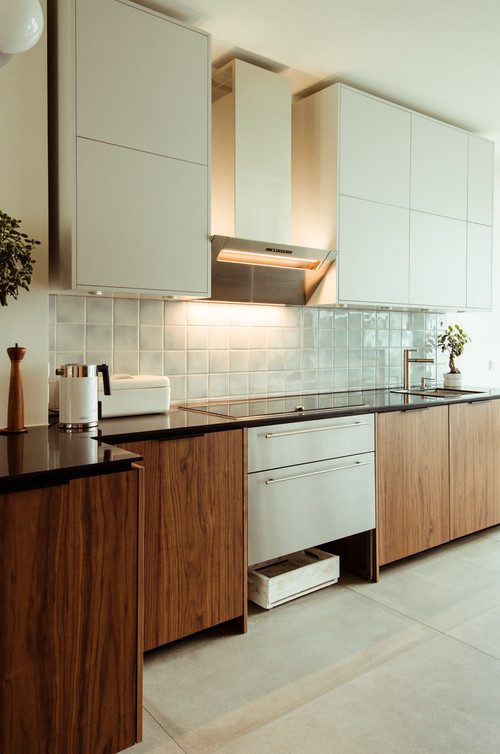 Кухня буквально наполнена запахами. Утренний кофе, жареное мясо, ароматные восточные специи — то, что нравится вам, может не понравиться вашим домочадцам. Поэтому при планировании расстановки техники начните с вытяжки: она может как привычно располагаться над плитой, так и «перенестись» поближе к столу с кофемашиной и мультиваркой. Кстати, опытные хозяйки знают, что от запахов отлично спасает обычная пищевая сода. И все же комплексный подход к решению деликатной «проблемы ароматов» не помешает.5. Мысленно расположите технику