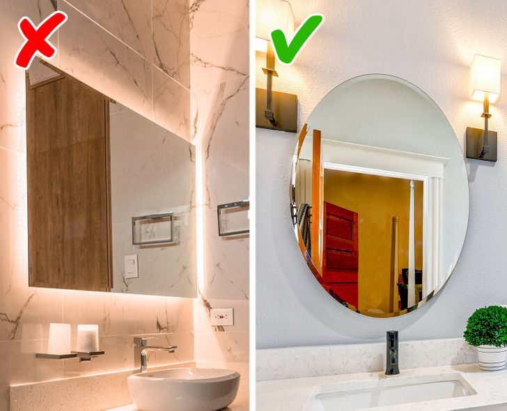 Большое зеркало визуально увеличивает пространство, подчеркивает дизайн и выглядит роскошнее, чем маленькое и невзрачное. К тому же в нем удобно себя рассматривать. Если большое зеркало некуда повесить, просто поставьте рядом еще одно — увеличительное. Этим лайфхаком пользуются многие отели.