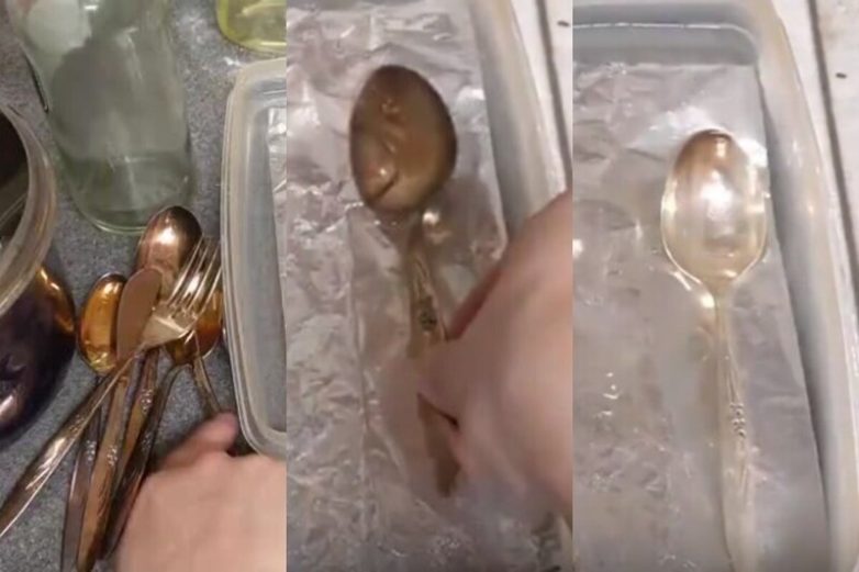 Как быстро очистить столовые приборы от налёта с помощью фольги, соды и соли