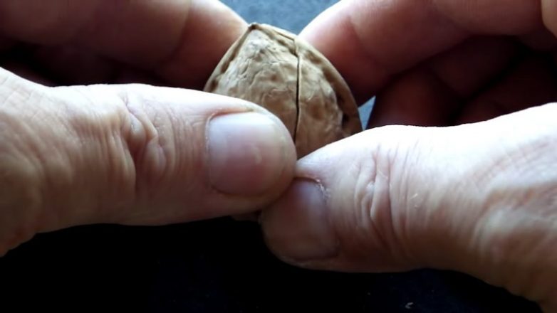 Для этого орех нужно положить на идеально ровную и устойчивую поверхность. Первый легкий удар молотком нужно сделать по цельной (!) скорлупе, а не там, где есть трещина.