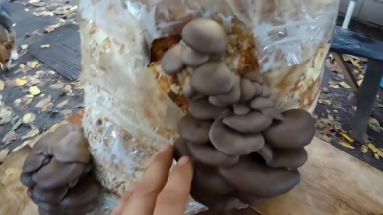 В течение следующей недели грибы начнут активно расти. В общей сложности, начиная от момента распределения мицелия по опилкам, до появления взрослого гриба, пройдет 30 дней. У выросшего гриба можно отрезать ножки и снова использовать в дело — распределить по новому мешку с опилками. Отработанные опилки снова использовать нельзя — они теперь могут быть полезны только как удобрение или мульча на огороде.