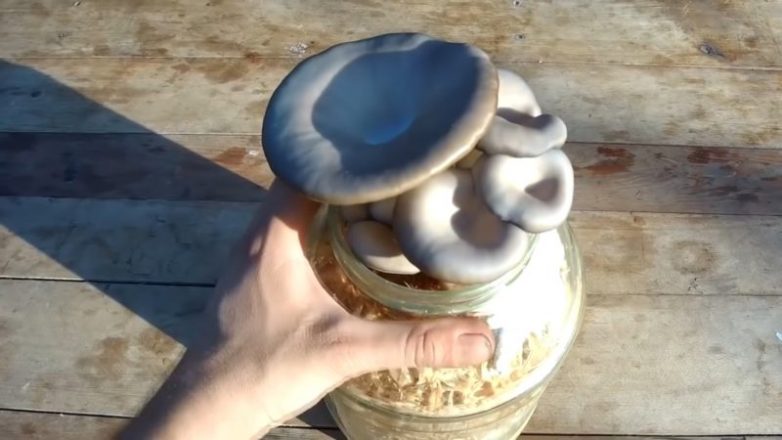 То же самое можно сделать и в стеклянной банке, которая хорошо держит влагу. Этот способ подойдет тем, кто хочет вырастить грибы именно у себя дома — на подоконнике кухни, например. Банку 3-4 л (чем больше, тем лучше) наполните теми же прокипяченными, отжатыми и слегка влажными опилками, распределите мицелий.