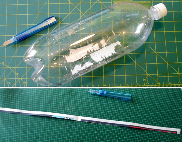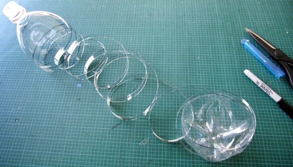 Разрежьте бутылку по спиральной маркировке, двигаясь от горлышка ко дну.