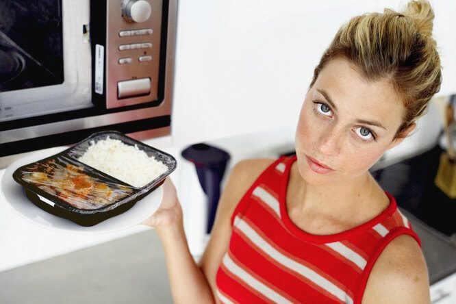 Пластик и микроволновая печь — не лучшее сочетание. Очень многие виды пластика содержат эстрогеноподобные вещества, которые могут приводить к нарушению работы некоторых органов. При нагревании в микроволновой печи эти вещества проникают в пищу, а употребление такой пищи плохо сказывается на нашем здоровье. Чтобы не гадать, из какого именно пластика сделан ваш контейнер, лучше просто переложить блюдо в стеклянную посуду. Контейнеры созданы для хранения пищи в холодильнике, по большей части.