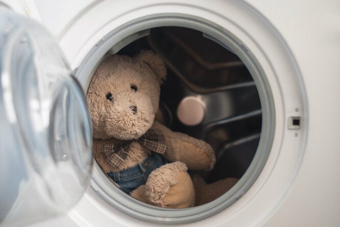 Если игрушка уже старая, и вы хотите ее не только обновить, но и продезинфицировать, перед стиркой можно положить ее в морозильную камеру, уничтожив таким образом паразитов и клещей, которые могли завестись в наполнителе. После этого просто стирайте игрушку на деликатном режиме при температуре 30 градусов. Да, и не забудьте, как и в случае с подушками, добавить программу полоскания. Моющие средства не сразу вымываются из наполнителя.