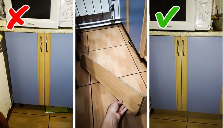 Под мебелью на ножках скапливается грязь, которая при нерегулярной уборке разносится по всему дому. И выглядеть это может так, словно вы вообще не убирались. Решить проблему поможет мебель без ножек или цокольная планка. Даже если эта деталь не шла в комплекте к гарнитуру, ее можно заказать отдельно или сделать самостоятельно. А тем, кто хочет использовать пространство под мебелью с максимальной пользой, подойдет цокольный ящик.
