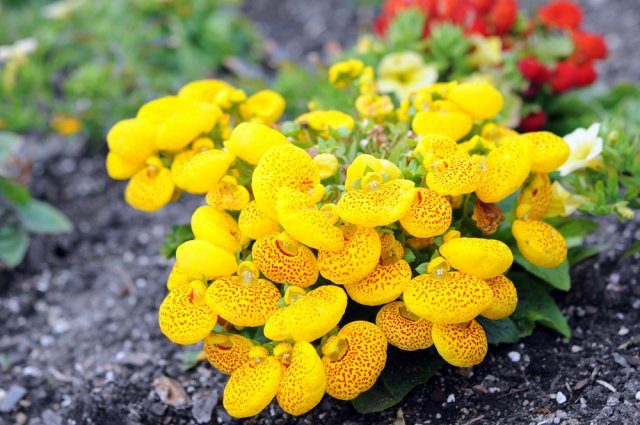 После пикировки растения нуждаются в подкормках. Удобряйте сеянцы каждые 2 недели комплексным минеральным удобрением, и они отблагодарят вас пышным цветением. Некоторые цветоводы заносят горшки с кальцеолярией на зиму в квартиру, чтобы сохранить растение. Однако на второй год цветение не такое обильное и красивое, поэтому цветок лучше выращивать как однолетник.