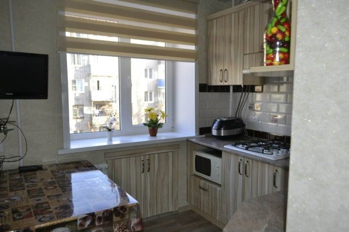 Кухня в хрущевке — отдельная тема для обсуждения. Только правильно все распланировав, здесь можно разместить все необходимое. Задействован должен быть каждый сантиметр. Именно поэтому очень удивительно и непонятно, когда владельцы крошечных кухонь не используют место под окном.