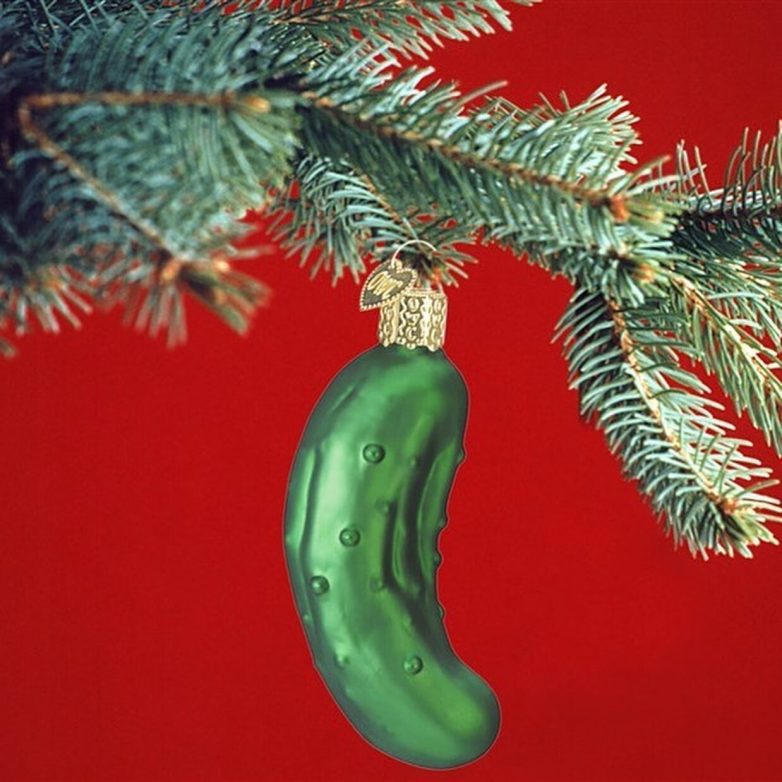 Эта традиция родом из Германии, хотя многие немцы о ней ничего и не слышали. На ёлку вешают маленький зеленый огурчик, причем прячут его в ветвях. Тот, кто первым найдет это маленькое украшение, не раздвигая и не трогая веток, получит дополнительный сюрприз: небольшую сумму денег или еще один подарок!