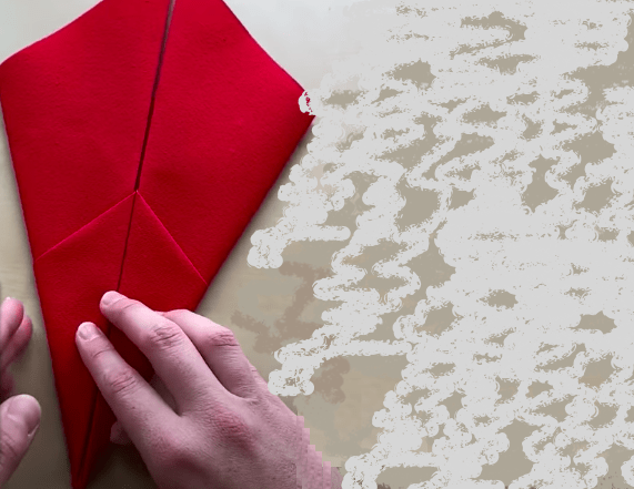 Теперь, начиная с самого верха, формируем уголок и загибаем его внутрь. Таким образом прорабатываем весь край, хорошо проглаживая все сгибы. Вот такая трапециевидная заготовка, напоминающая пилотку, у вас должна получиться.