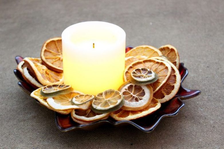Апельсины, лимоны и лайм лучше всего выглядят в засушенном виде. Они полностью высыхают, не становятся липкими и сохраняют свою форму, в отличие от яблок. Нарежьте фрукты кружочками (чем тоньше ломтики, тем быстрее они высохнут).