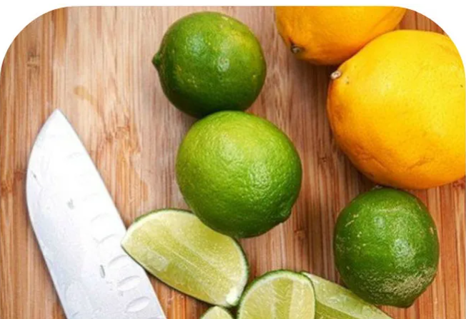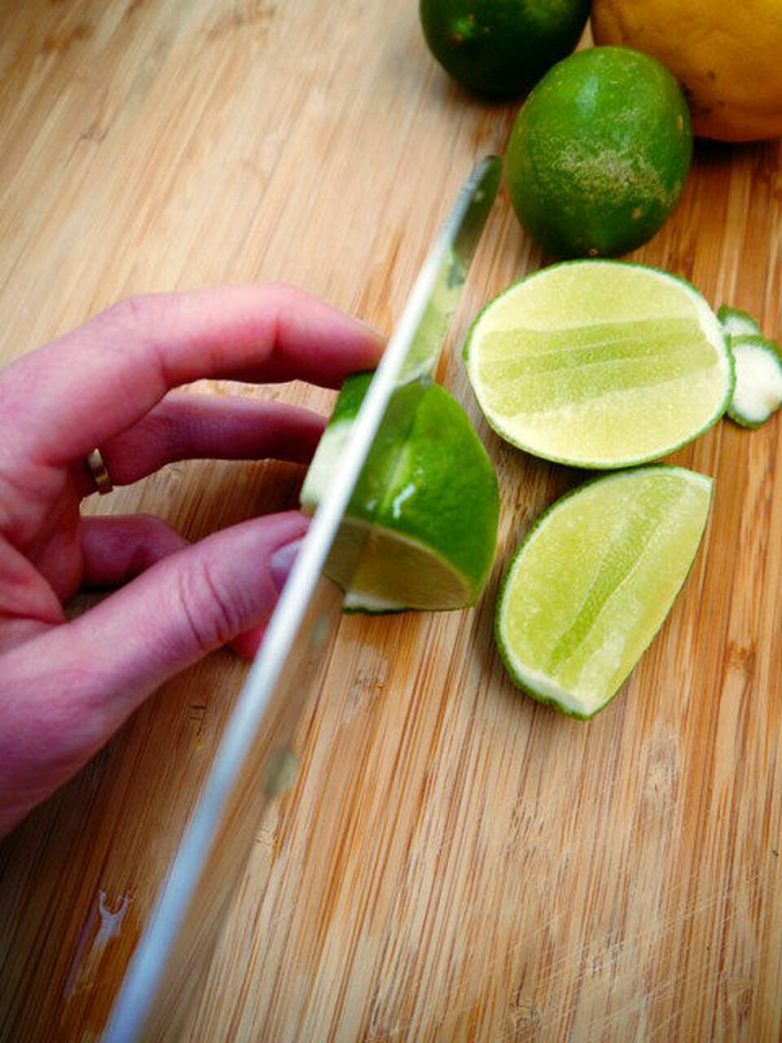 Чтобы выжать из лимонов или лаймов больше сока, необходимо нарезать дольки в обход сердцевины, как показано на фотографиях.