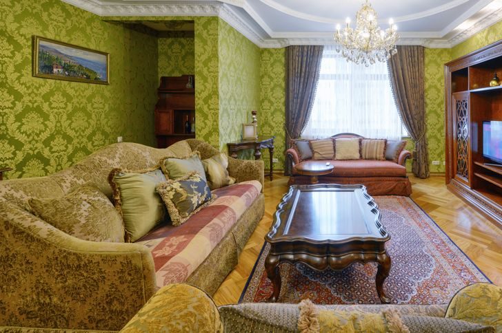 Объемный аляповатый декор с претензией на «дорого-богато», роскошные диваны с вензелями и массивные кровати с позолотой в обычном интерьере смотрятся вульгарно.