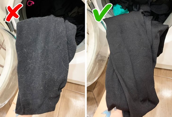 Если одежда покрыта шерстью, очистите ее перед загрузкой в стиральную машину. Например, с помощью обычного липкого ролика. Есть еще вариант: положите одежду в машинку и запустите 10-минутный цикл сушки, если такой режим имеется. Это смягчит ткань, и большая часть шерсти попадет в фильтр. После цикла встряхните одежду, чтобы избавиться от остатков шерсти, и почистите фильтр в машинке. После этого можно спокойно стирать.
