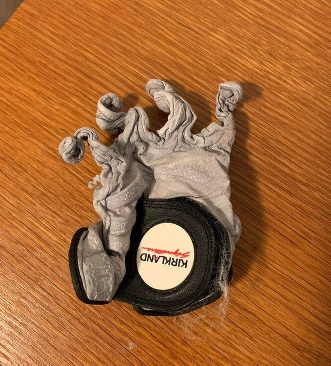 В заднем кармане брюк забыли перчатки.