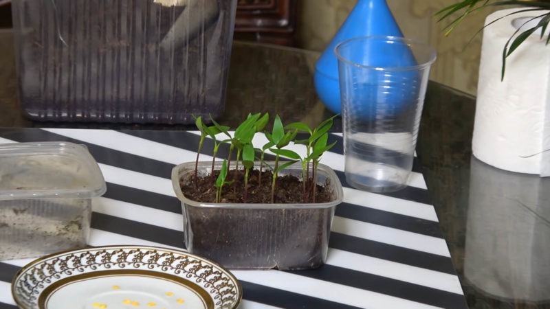 Присыпьте землей и увлажните из пипетки или пульверизатора. Накройте крышкой или пакетом и оставьте в тёплом месте (25-30 градусов) до всходов.