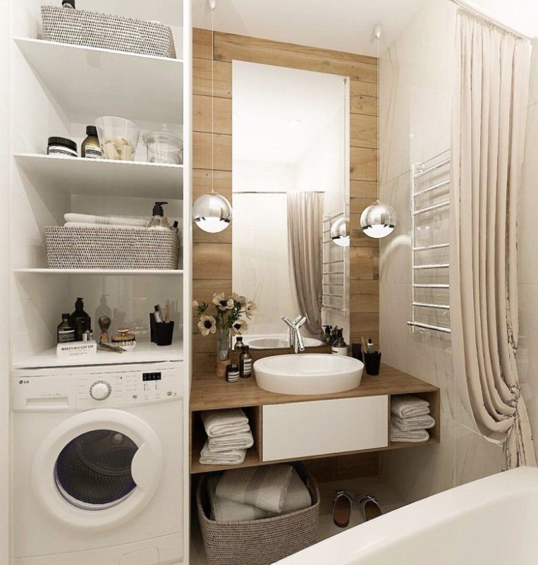 Установите стиральную машинку под раковиной, тем самым экономя пространство
