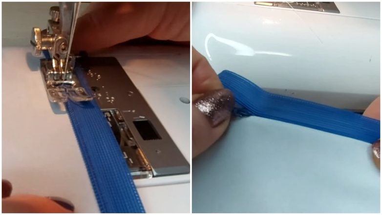 Перед пристрачиванием потайной молнии на машинке с обычной лапкой, ее следует прогладить не слишком горячим утюгом, чтобы зубчики не расплавились, а лишь слегка вывернулись. Затем змейка укладывается на деталь по принципу лицом к лицу и после стыковки края пристрачивается. Ориентировочное расстояние между зубчиками и швом — 1,5-2 мм. Ответная часть пристрачивается аналогично.