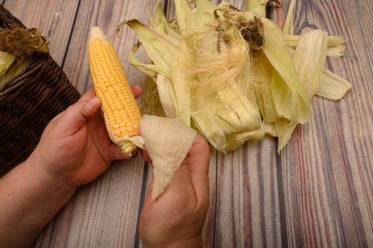 Быстро почистить початок кукурузы. Можно воспользоваться тем же способом, что и с чесноком. Отрезаем стебель и кладем в печь на 30–60 секунд. Так можно легко убрать даже самые мелкие волоски.