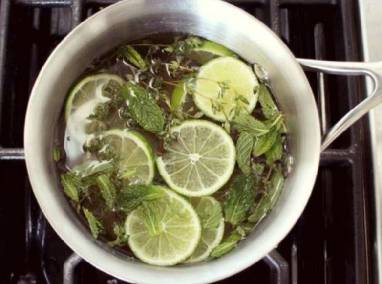 Если вы не хотите использовать уксус, боясь, что от него запах на кухне будет не совсем приятный, то можно взять на заметку другой способ. Вы можете сварить в кастрюле совершенно любую смесь, например, добавить туда цитрусовые, вкусные травы и другие ароматные продукты.