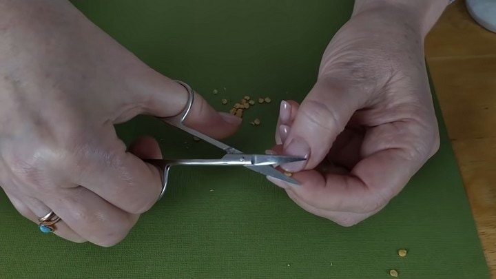 Итак, в качестве подготовки, у семян желательно срезать «носики» (если они есть). Будьте очень осторожны, чтобы не повредить само семечко — работайте маленькими маникюрными ножницами!
