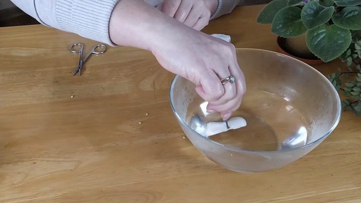 Погрузите ватный диск в горячую воду и досчитайте до трёх.