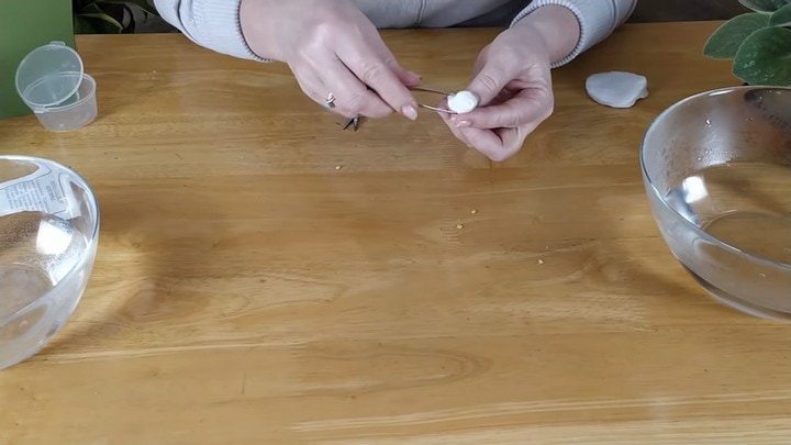 Для процедуры вам понадобятся две ёмкости. В одну из них нужно налить ледяную воду (можно даже добавить кубики льда), а в другую едва-едва остывший кипяток (от воды ещё должен идти пар). Ватный диск, в который завёрнуты семена, держите пинцетом, чтобы не обжечь руки.