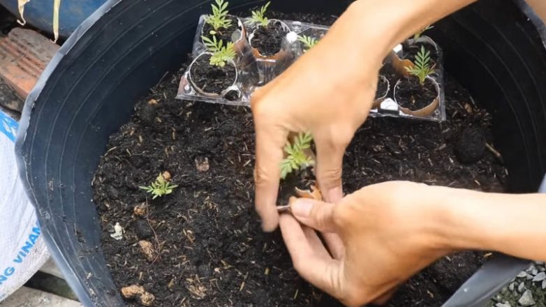 Теперь сожмите скорлупу так, чтобы она разломалась, и высадите растение в грунт прямо с ней. Разлагаясь, скорлупа будет отличной стартовой подпиткой маленькому растущему растению.