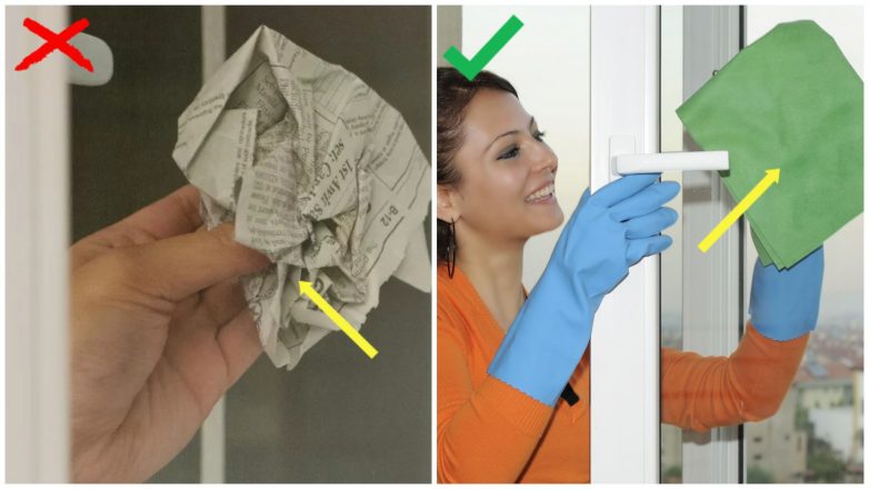 Не стоит полагаться на старый бабушкин способ мытья газетной бумагой. Она может испачкать как ваши руки, так и окна типографской краской. Лучше запаситесь салфетками из микрофибры и сухой ветошью для протирки.