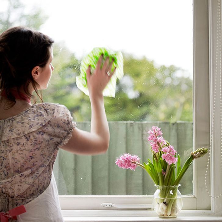 1. Мыть окна без попадания прямых солнечных лучей