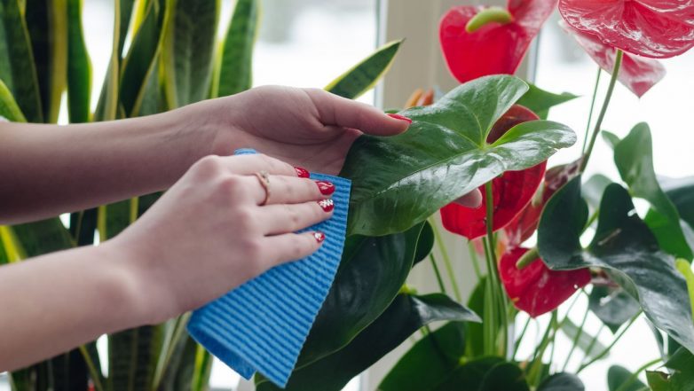 Комнатные цветы нужно не только поливать, но и «купать». Регулярно убирайте влажным способом пыль, оседающую на стеблях и листьях.