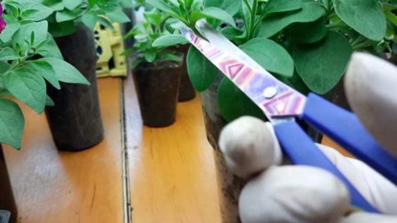 Чтобы петуния росла шариком, нужно своевременно обрезать побеги, один за одним — тогда из каждого настоящего листа будет формироваться новый побег, который в будущем даст цветонос. Чем больше побегов, зелёной массы и корневой системы перед непосредственной высадкой в грунт — тем больше шансов получить очень пышное и равномерно цветущее растение.