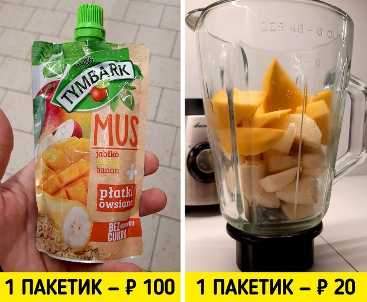 Однако обратите внимание: в большинстве таких пюре основной ингредиент — яблоко. Это самый бюджетный фрукт в нашем регионе (цена за килограмм — ₽ 100–120). Пакетик пюре стоит ₽ 30–100. Как думаете, сколько яблок идет на один 90-граммовый пакетик пюре?