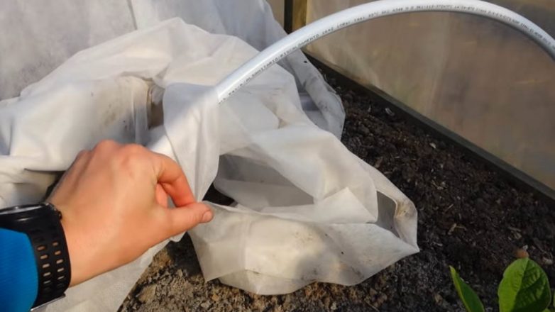 Поверх протянуть спанбонд, закрепить держателями (идут в комплекте с трубой). В таком мини-парнике рассада будет чувствовать себя комфортно, даже если температура ночью неожиданно опустится чуть ниже 10 градусов.