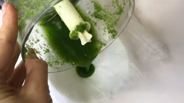Переместите в блендер и взбейте до однородной массы. Перелейте в ситечко с марлей и процедите от мякоти.