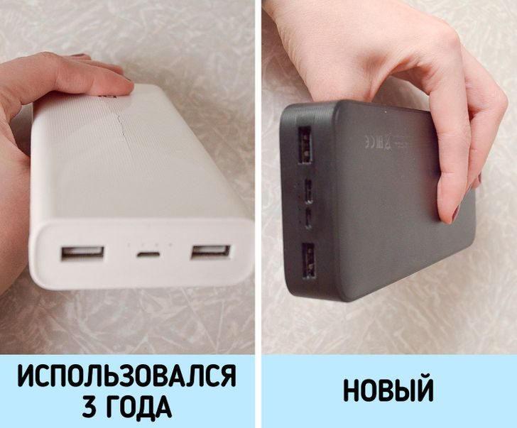 Внешний аккумулятор, или пауэрбанк, незаменим, особенно в путешествиях, походах, долгих прогулках. В среднем элемент питания служит 1–3 года и обычно рассчитан на 500 сеансов зарядки. После этого срока его емкость начнет постепенно снижаться, а в худших случаях батарея может вздуться, тогда ее нужно как можно скорее утилизировать.