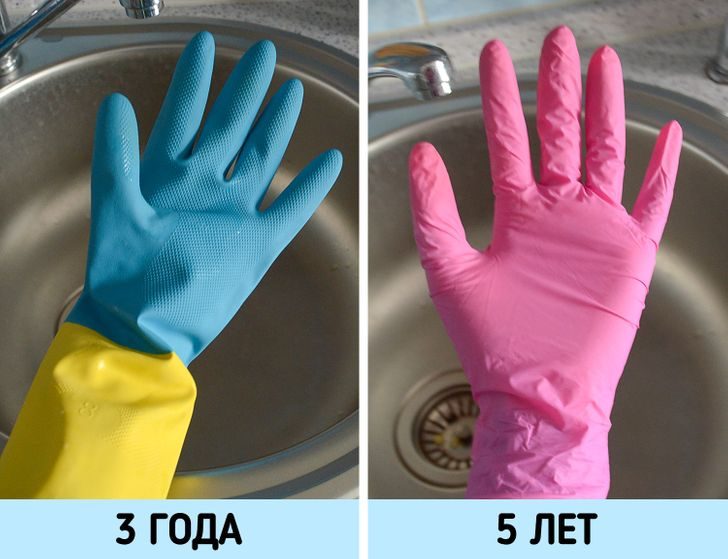 Перчатки не производят впечатления «долгоиграющего» аксессуара, однако срок их службы гораздо дольше, чем мы представляли. Латексные перчатки можно использовать на протяжении 3 лет, а нитриловые — 5 лет. Чтобы они не отправились в утиль раньше времени, за ними нужно ухаживать: мыть теплой водой и мылом после каждого использования, хранить при температуре до 25 °С и держать подальше от прямых солнечных лучей — материал может дать трещину.