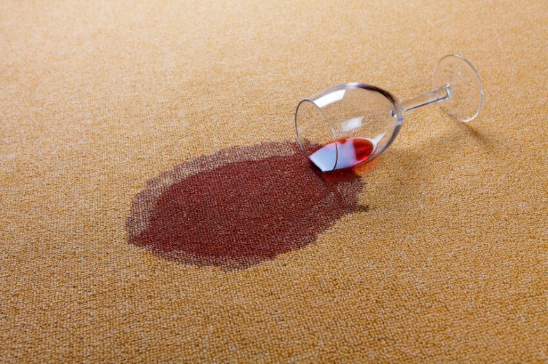 Соскребите загрязнение скребком или аккуратно ножом или ложкой и приготовьте смесь из двух чайных ложек средства для мытья посуды и двух стаканов воды. Начинайте промокать (не трите!) губкой, тканью или щеткой с мягкой щетиной, пока пятно не исчезнет.