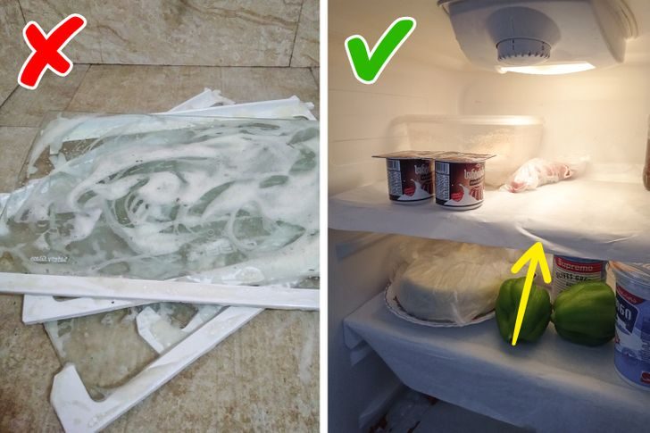 Холодильник совсем не обязательно мыть чаще, чем раз в квартал, если на внутренней поверхности нет грязных следов и пятен. Чтобы стеклянные полки не приходилось замачивать и оттирать, их можно накрыть пергаментной бумагой. В отличие от пищевой пленки, которую часто используют с той же целью, бумага не покрывается конденсатом. К тому же пергамент более экологичен.