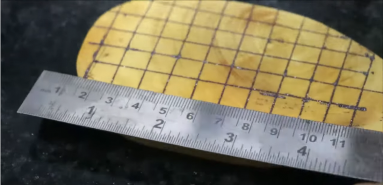 Далее на поверхности выбранной основы делаем разметку в виде сетки. Длина стороны квадратика в нашем случае — 1 см.