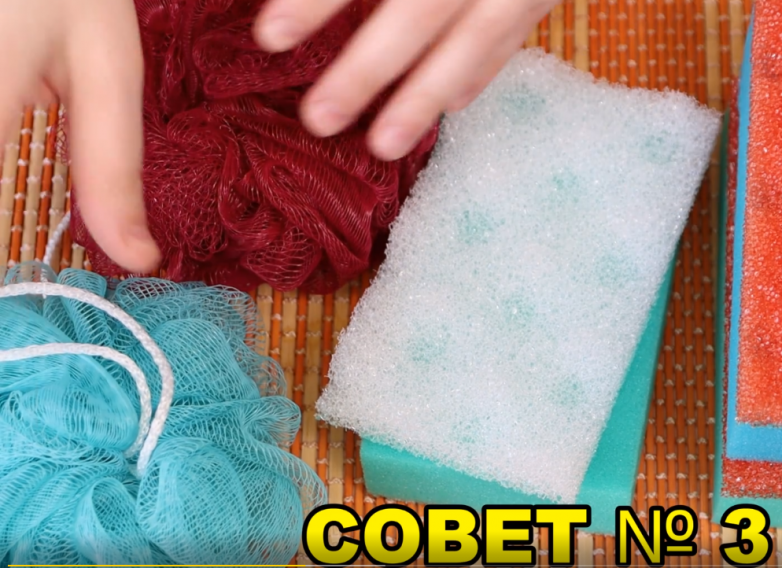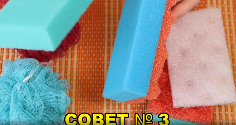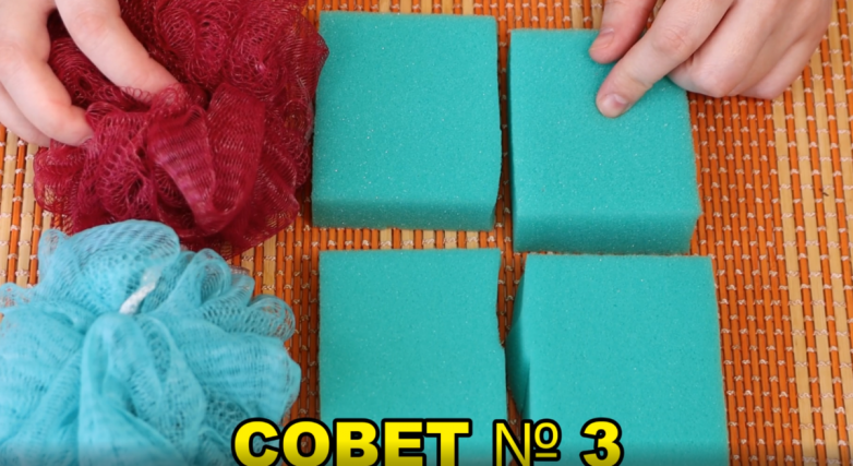 Я в магазине купила губки, я их долго выбирала, выбрала губки с самым жестким поролоном. Поролон есть с дырочками, как сыр. Такие губки не нужно брать, такой поролон быстро крошится.