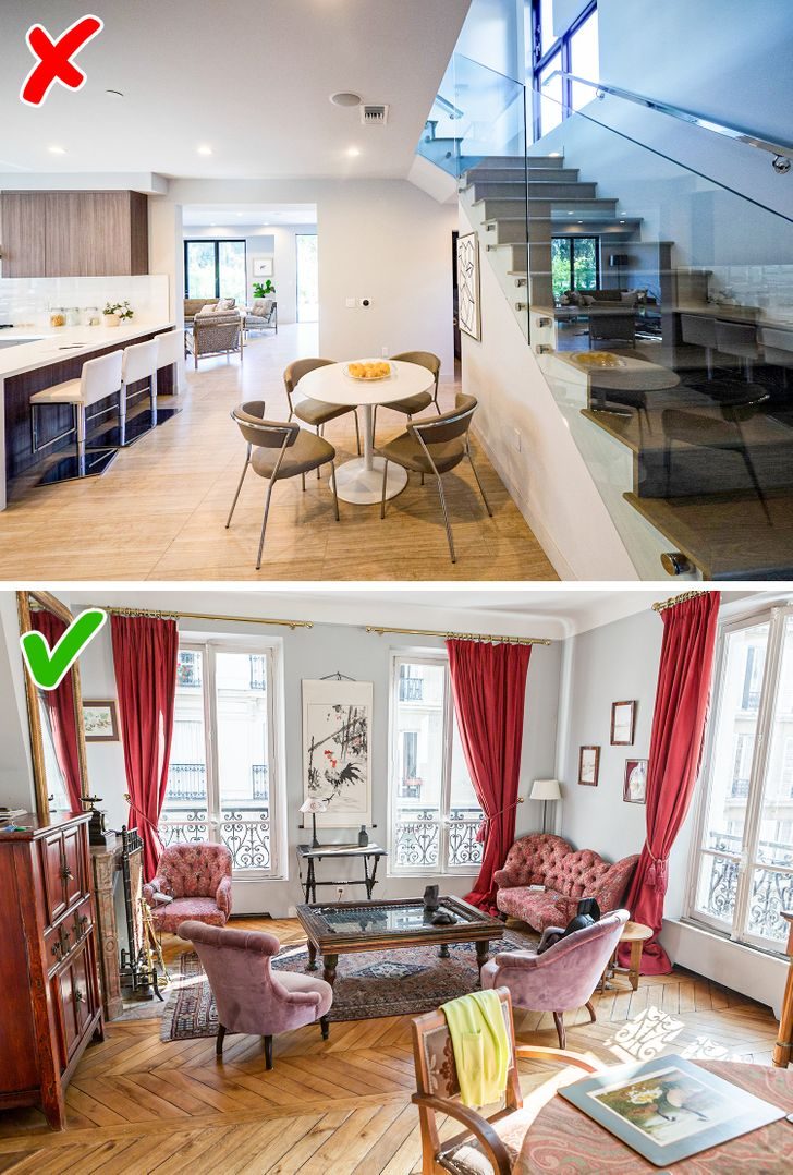 Вам может показаться, что разделить маленькую квартиру на зоны перегородками — хорошая идея, но это не так. Перегородки хорошо смотрятся только на фото, а в реальности делают небольшое помещение еще меньше и очень мешают во время уборки.