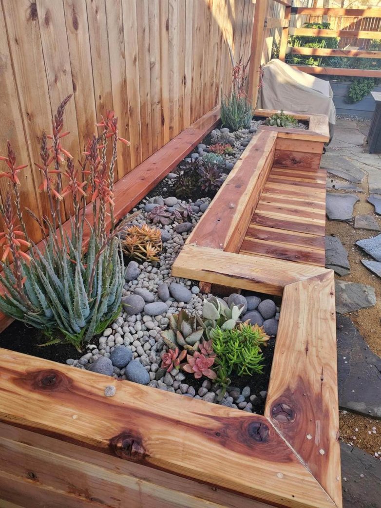 Садовая скамейка, одновременно выполняющая роль клумбы