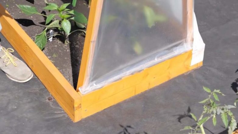 По бокам натянута плёнка и закреплена на обычный степлер.
